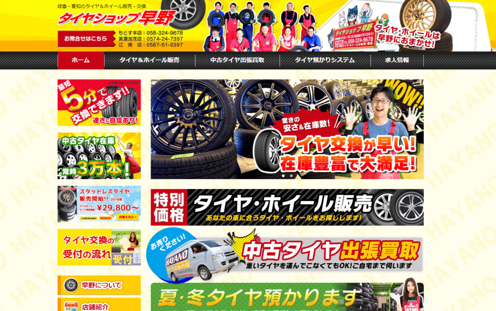 タイヤショップ早野は、おかげ様で創業23年目を迎えることができました。これもひとえに、全てのお客様や地元の皆様のご愛顧の賜物と深く深く感謝しております。 今だからこそ、もう一度初心に立ちかえり、確かな技術のお届けと最高の笑顔でのお迎えができる様、取り組む決意でございます。可愛いマスコット犬じんぺい達やリトルホースのニコ、オウムのこうちゃんもお待ちしています。 これまで以上に皆様に親しまれるお店「やっぱり早野だね!!」とお言葉をいただけるご縁づくりに精進してまいります。