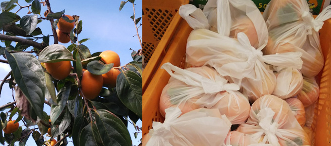 各店舗で柿のとれるシーズンに、お客さまへプレゼントをしています。