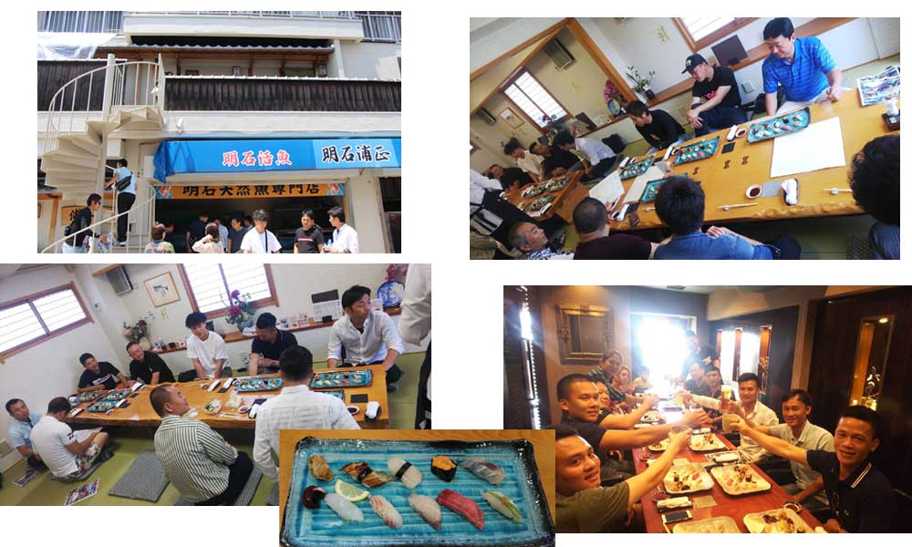 そして、せり市から歩いてお昼ご飯の場所、明石浦正へ移動して新鮮な魚をお寿司でいただきました。