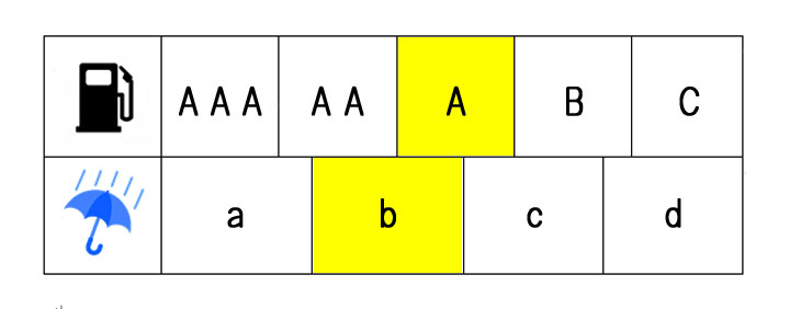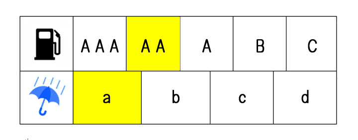 ラベリングと言って、転がり抵抗性能とウェットグリップ性能が表示してあるんですよ。