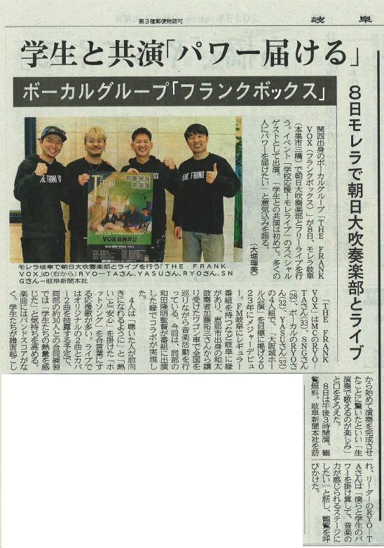 タイヤショップ早野のCMでおなじみの、THE FRANK VOX(フランクボックス)がゲスト出演します!