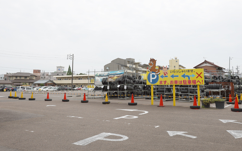 美濃加茂店の入り口は、パチンコ店WINGの駐車場と隣接しています。わかりやすいように、入り口には、看板と旗を設置しております!!